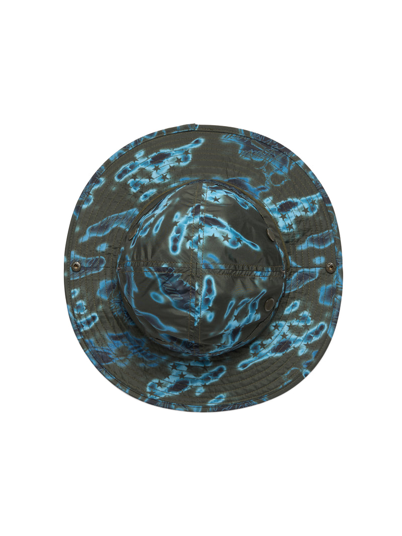 Constructed in 100% polyester, our Cloud Camo Bucket Hat features a full Cloud Camo airbrushed print: a graphic amalgamation of key ‘Libertas’ motifs, including the US flag, African Diaspora Goods, and New Colossal.