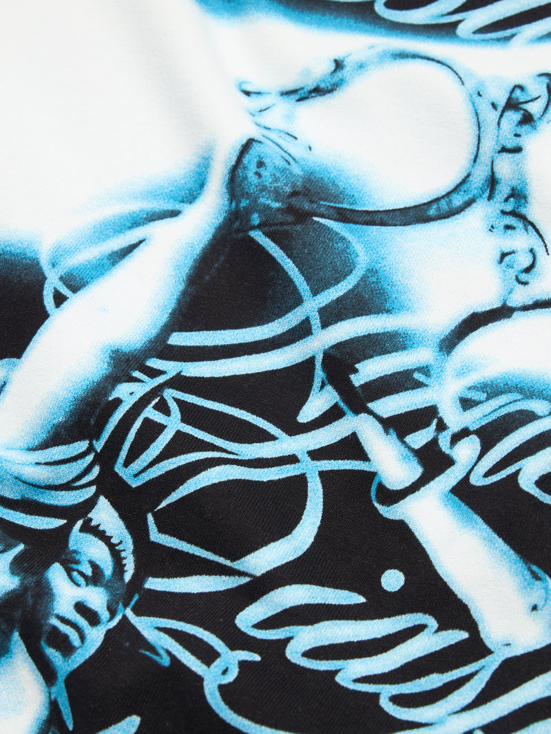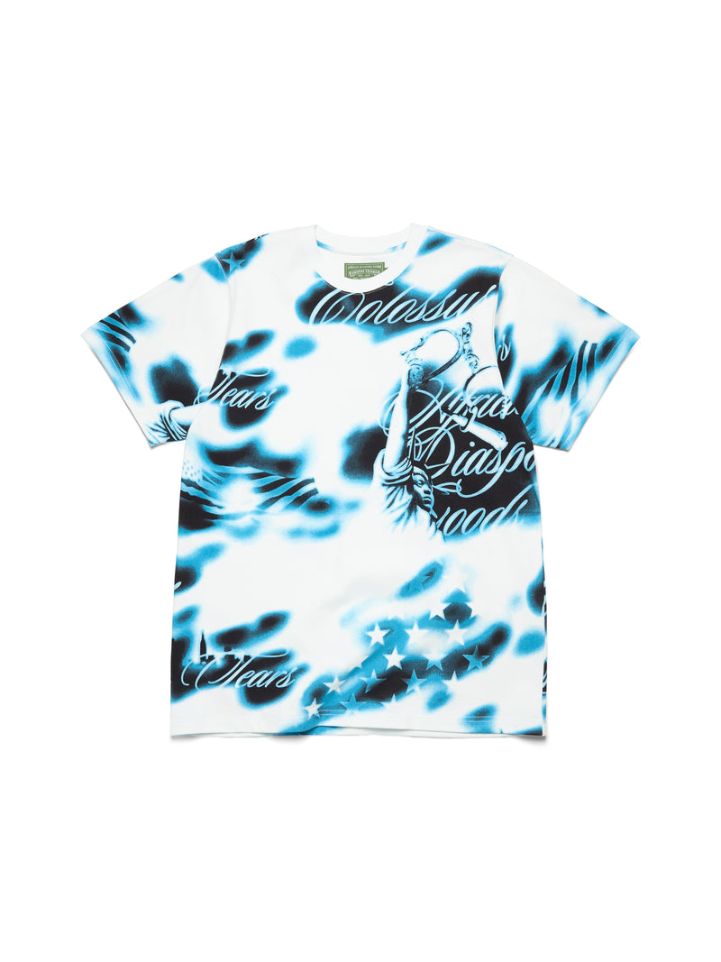 Produced in 100% cotton and cut to a regular fit, our Cloud Camo Tee features a full Cloud Camo print. A graphic amalgamation of key ‘Libertas’ motifs, including the US flag, African Diaspora Goods, and New Colossal.