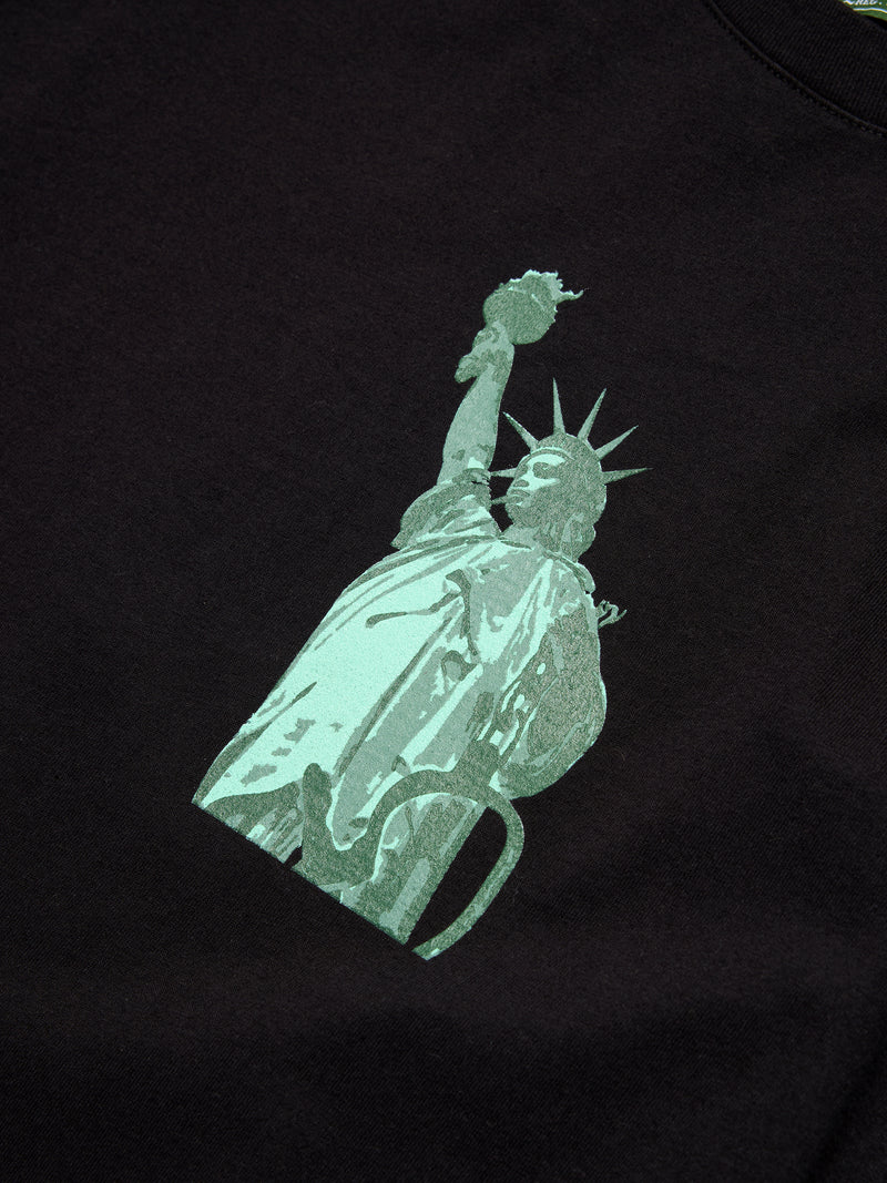 Produced in 100% cotton and cut to a regular fit, our Libertas Abolition SS Tee features a screenprinted graphic of the ‘Libertas’ Lady Liberty. In her left hand, she holds shackles, as originally intended by sculptor Frédéric-Auguste Bartholdi to commemorate the end of slavery; a monument intentionally built to celebrate emancipation, relocated to her feet and obscured before completion following American funders’ rejection of Bartholdi’s vision.