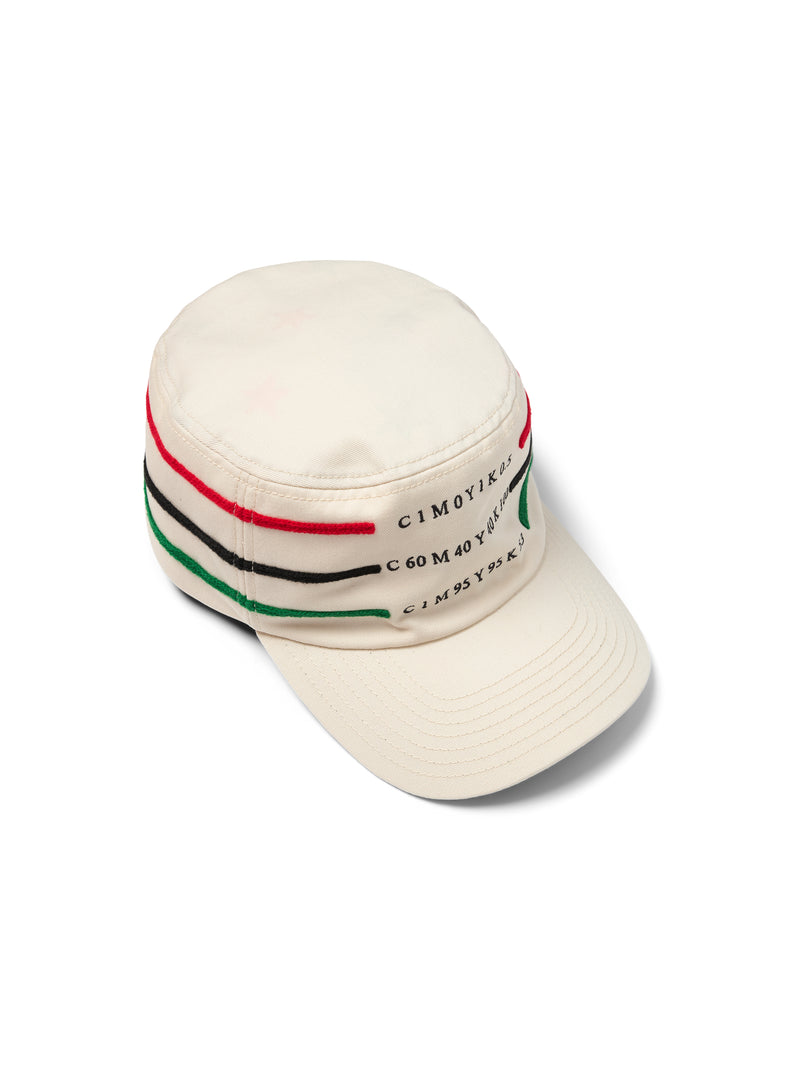 For Denim Tears, Thomas / Orito centered their exploration on the colors red, black, and green, engaging their historical, social, and political resonance. The palette moves beyond surface symbolism, operating as a living language—one that carries memory, resistance, and identity. Through this lens, color becomes untethered from linear time, existing fluidly across past, present, and future, while space becomes a site of movement, confrontation, and continuity.
