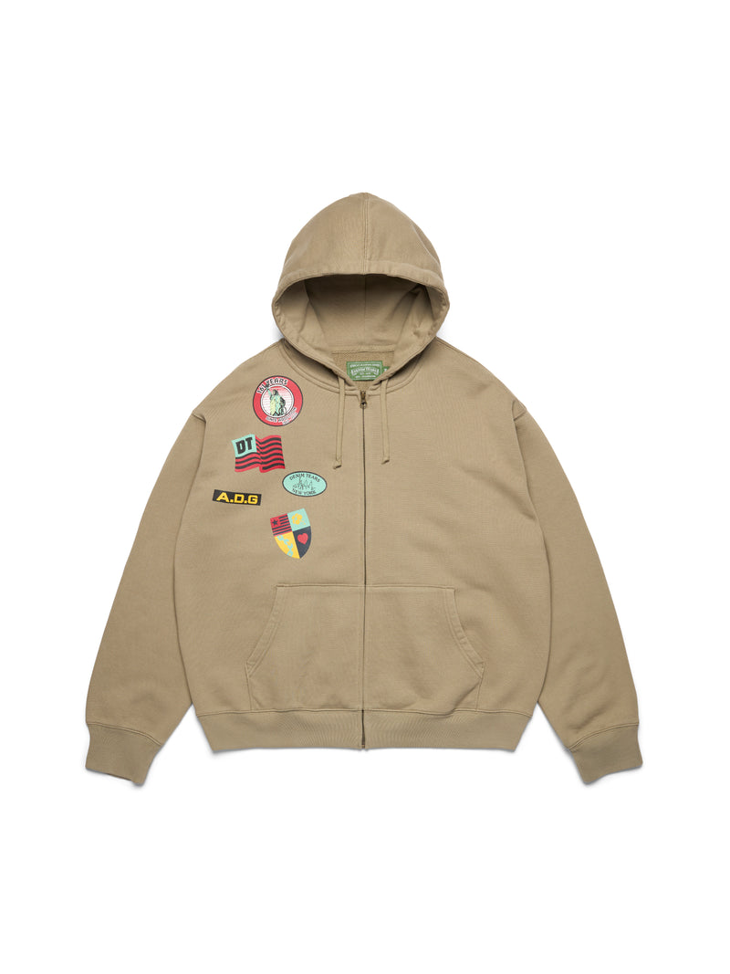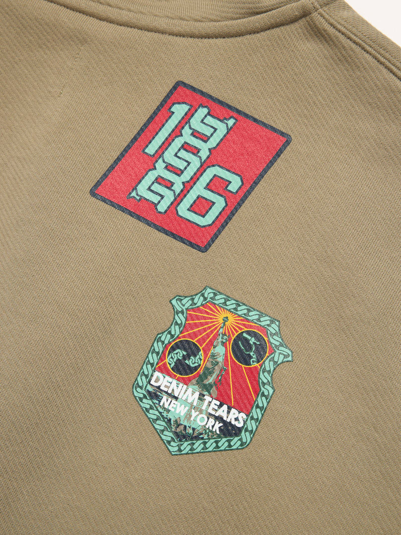 Produced in 100% cotton and cut to a regular fit, our Ranger Patches Hoodie features Trompe-l’oeil-printed patches motifs core to the Denim Tears universe, including African Diaspora Goods and the 1619 Pan-African Flag alongside the ‘Libertas’ New York City skyline and Lady Liberty. Finished with a custom antique nickel Denim Tears zipper.
