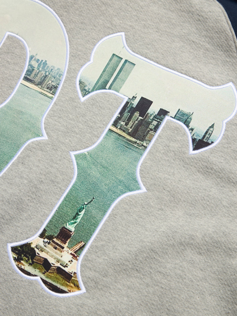 Constructed in 100% cotton to a regular fit with raglan sleeves, our Rugby Zip Hoodie is embellished with a photo appliqué displaying a view of the Statue of Liberty and New York City skyline and chenille patches, including the Pan-African flag.